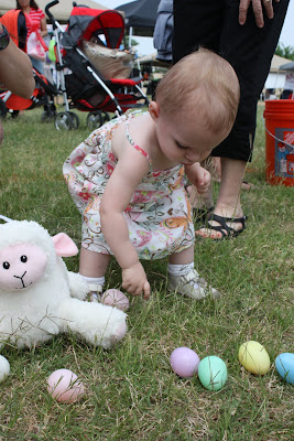Ella found the pile of eggs my mom was going to hide and helped herself to them...easiest egg hunting ever!!!